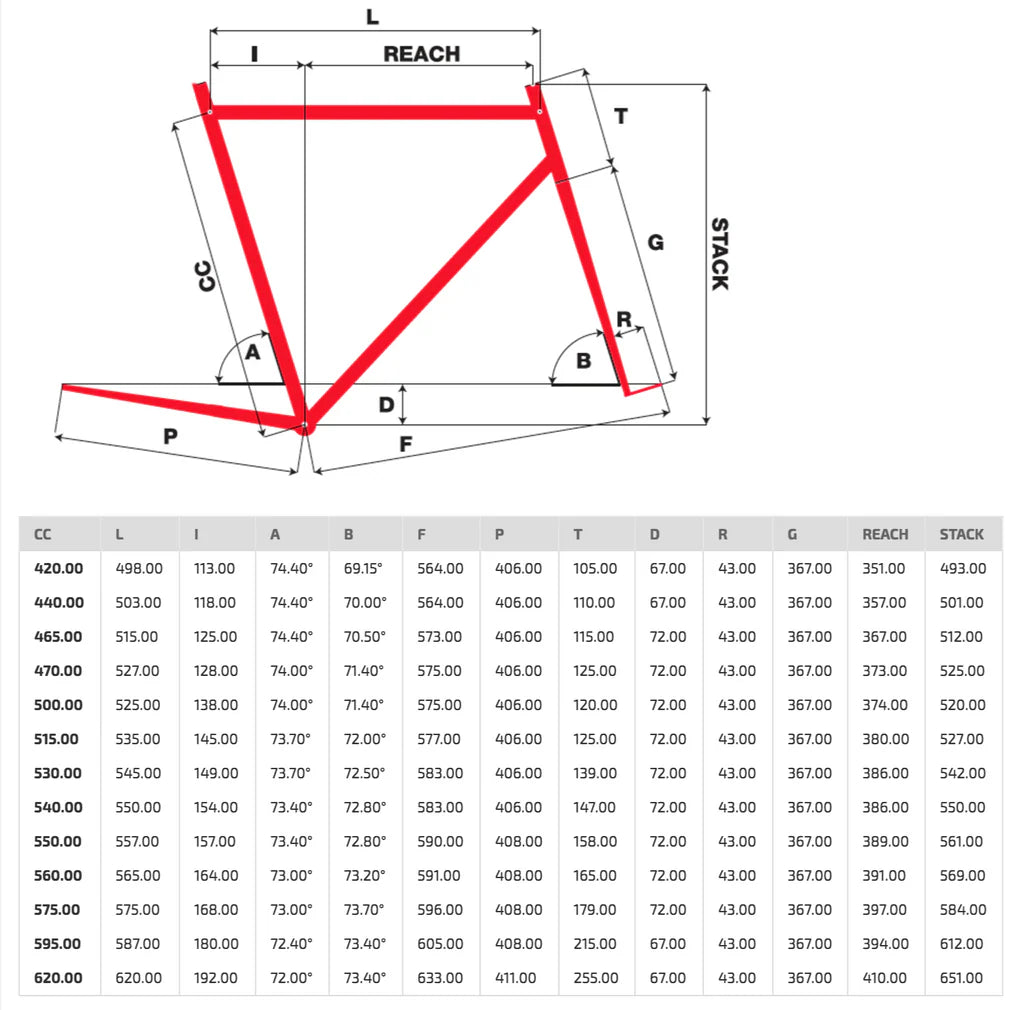 - Seat tube length from center of BB to center of top tube: 54 cm